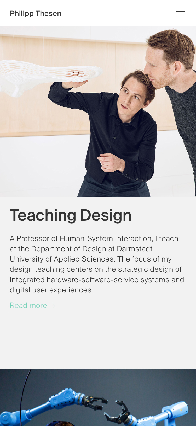Philipp Thesen is a designer and a strategist. He advises organizations on how to utilize design to differentiate, innovate and transform. He is a professor of human-system interaction at the University of Applied Sciences Darmstadt. There, he founded the Human Factor Lab and conducts research at the intersection of design and digital technologies.
